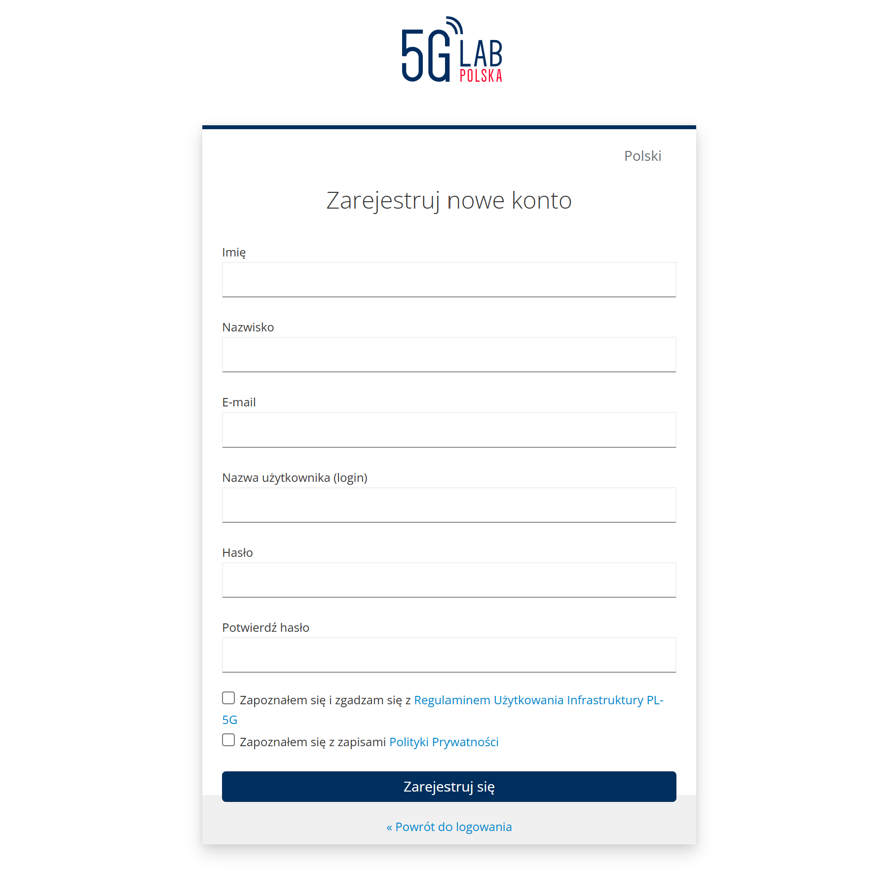 Po wybraniu przycisku "Zarejestruj się", użytkownik zostanie przekierowany do widoku rejestracji nowego konta w systemie. W formularzu rejestracyjnym użytkownik musi podać następujące dane:
